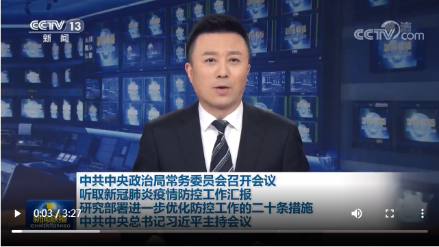 新華社北京11月10日電 中共中央政治局常務(wù)委員會11月10日召開會議,聽取新冠肺炎疫情防控工作匯報,研究部署進(jìn)一步優(yōu)化防控工作的二十條措施。中共中央總書記習(xí)近平主持會議并發(fā)表重要講話。