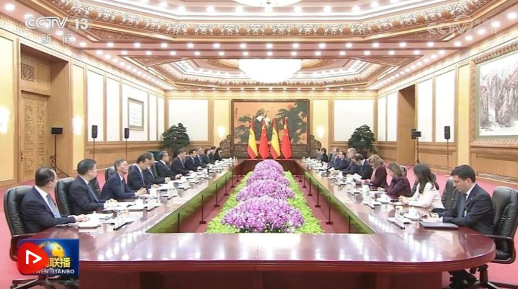 習(xí)近平強(qiáng)調(diào),中方珍視同西班牙的傳統(tǒng)友好,重視西班牙在國(guó)際和地區(qū)事務(wù)中的獨(dú)特作用,愿同西班牙一道,攜手打造更有戰(zhàn)略定力、更富發(fā)展活力、更具國(guó)際影響力的全面戰(zhàn)略伙伴關(guān)系。雙方要進(jìn)一步堅(jiān)定相互支持,保持高層交往勢(shì)頭,加強(qiáng)戰(zhàn)略引領(lǐng),確保兩國(guó)關(guān)系始終走在正確道路上。要進(jìn)一步推進(jìn)務(wù)實(shí)合作,中方愿進(jìn)口更多西班牙優(yōu)質(zhì)產(chǎn)品,挖掘新能源、數(shù)字經(jīng)濟(jì)、人工智能等新興領(lǐng)域合作潛力,擴(kuò)大相互投資,打造更多標(biāo)志性項(xiàng)目。雙方還可以優(yōu)勢(shì)互補(bǔ),共同開拓拉美等第三方市場(chǎng)。要進(jìn)一步促進(jìn)民心相通,加強(qiáng)文化教育領(lǐng)域交流,相互支持辦好各自在對(duì)方國(guó)家的文化和語言機(jī)構(gòu)。中方將繼續(xù)延長(zhǎng)實(shí)施對(duì)西免簽政策,便利人員往來,讓兩國(guó)民眾越走越親。