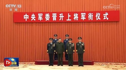 上午10時(shí)30分許,晉銜儀式在莊嚴(yán)的中華人民共和國(guó)國(guó)歌聲中開(kāi)始。中央軍委副主席張又俠宣讀中央軍委主席習(xí)近平簽署的晉升上將軍銜命令。中央軍委副主席張升民主持晉銜儀式。