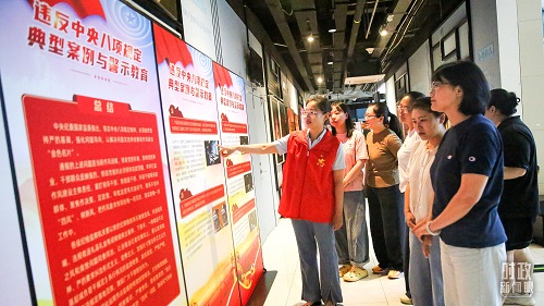 △2025年8月5日,江蘇南通,當(dāng)?shù)厍嗄挈h員參觀深入貫徹中央八項(xiàng)規(guī)定精神學(xué)習(xí)教育專題展。(圖/視覺中國)
