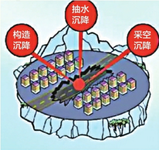 地面沉降是自然因素和人為因素綜合作用下形成的地面標(biāo)高損失。自然因素包括構(gòu)造下沉、地震、火山活動(dòng)、氣候變化、地應(yīng)力變化及土體自然固結(jié)等。人為因素主要包括開(kāi)發(fā)利用地下流體資源(地下水、石油、天然氣等)、開(kāi)采固體礦產(chǎn)、巖溶塌陷、軟土地區(qū)與工程建設(shè)有關(guān)的固結(jié)沉降等。