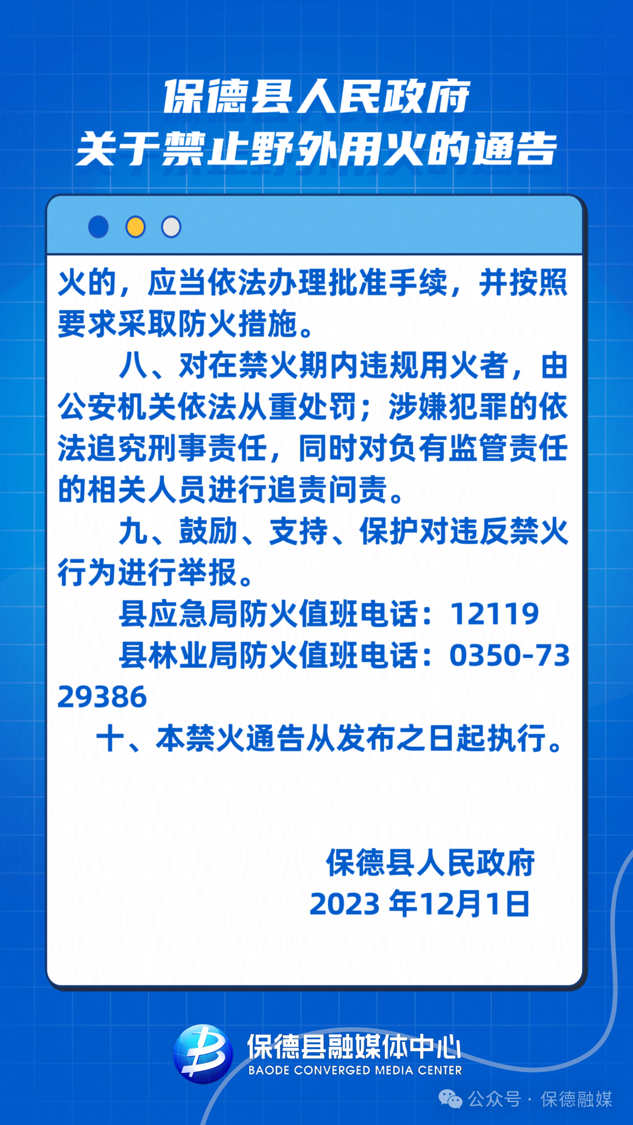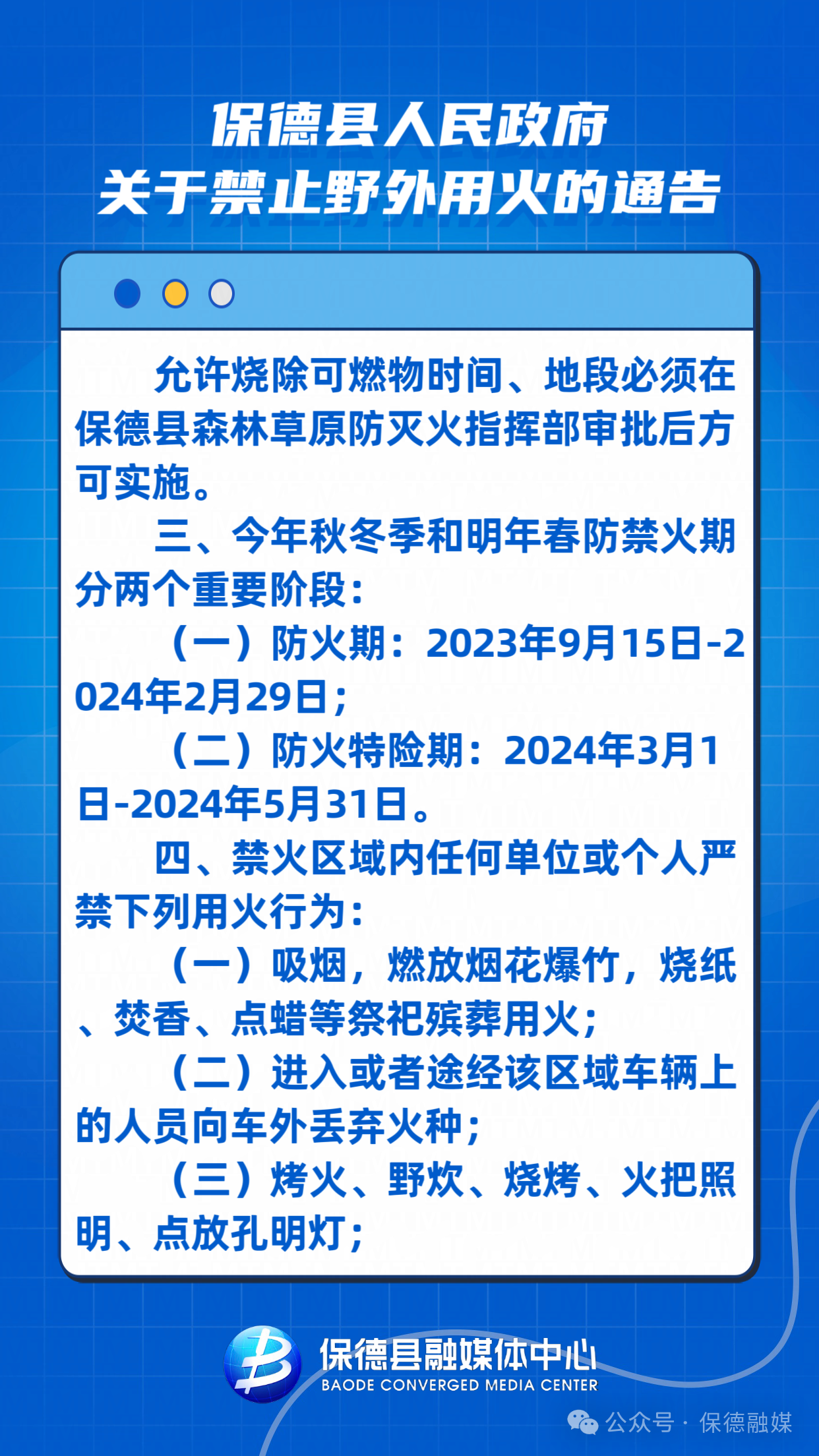 保德縣人民政府關于禁止野外用火的通告