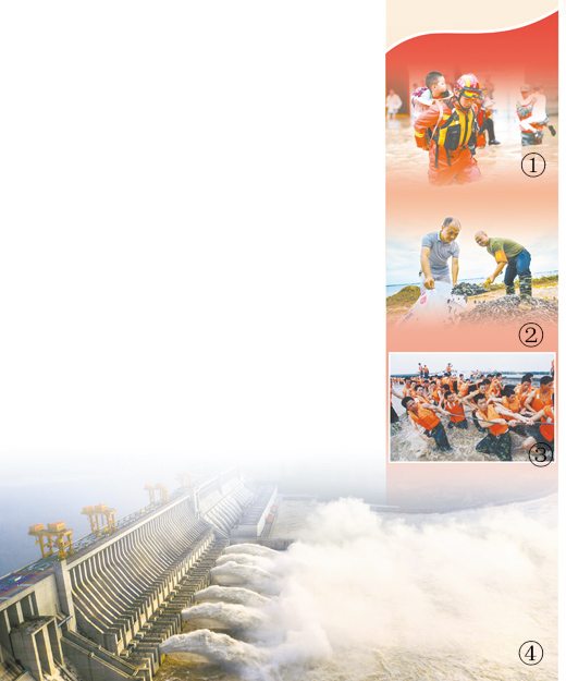 圖①:2020年6月,重慶涪陵區(qū)龍?zhí)舵?zhèn)遭遇暴雨,消防等救援力量營(yíng)救被困人員。肖樂(lè)峰攝(人民視覺) 圖②:2019年7月,鄱陽(yáng)湖水位全面超警,干部群眾在江西都昌縣南溪圩堤,全力加固堤壩。傅建斌攝(人民視覺) 圖③:1998年8月,黑龍江大慶市遭受嫩江、松花江洪水,人民解放軍奮戰(zhàn)在抗洪搶險(xiǎn)一線。小 燕攝(人民視覺) 圖④:2020年8月,長(zhǎng)江2020年第4號(hào)洪水形成,三峽水利樞紐攔洪削峰。鄭 坤攝(人民視覺) 廣大干部群眾和人民解放軍、武警官兵堅(jiān)決響應(yīng)黨和政府號(hào)召,發(fā)揚(yáng)不怕累苦、不怕疲勞、不怕犧牲的精神斗志,堅(jiān)守在防汛抗洪救災(zāi)第一線,涌現(xiàn)了許多先進(jìn)典型和感人事跡,展現(xiàn)了中國(guó)人民眾志成城、頑強(qiáng)拼搏、敢于勝利的英雄氣概,書寫了洪水無(wú)情人有情的人間大愛。 ——習(xí)近平總書記2020年8月在安徽考察時(shí)強(qiáng)調(diào) “共產(chǎn)黨員跟我上!”“洪水不退人不退!” 1998年夏天,氣候異常,暴雨頻發(fā),長(zhǎng)江出現(xiàn)全流域性大水,東北嫩江、松花江也暴發(fā)特大洪水。千鈞一發(fā)之際,在黨中央堅(jiān)強(qiáng)領(lǐng)導(dǎo)下,全黨、全軍和全國(guó)人民緊急行動(dòng),廣大黨員干部群眾同解放軍指戰(zhàn)員、武警官兵一起,團(tuán)結(jié)奮戰(zhàn),力挽狂瀾,同洪水進(jìn)行了驚心動(dòng)魄的殊死搏斗。在這場(chǎng)偉大的抗洪搶險(xiǎn)斗爭(zhēng)中,形成了“萬(wàn)眾一心、眾志成城,不怕困難、頑強(qiáng)拼搏,堅(jiān)韌不拔、敢于勝利”的偉大抗洪精神,成為中國(guó)人民彌足珍貴的精神財(cái)富。 大江奔涌,抗洪精神接續(xù)傳承。黨的十八大以來(lái),在以習(xí)近平同志為核心的黨中央堅(jiān)強(qiáng)領(lǐng)導(dǎo)下,我們成功應(yīng)對(duì)了長(zhǎng)江、嫩江、松花江、黑龍江等流域大洪水,保障了人民群眾生命安全、大中城市和重要基礎(chǔ)設(shè)施防洪安全,為經(jīng)濟(jì)社會(huì)平穩(wěn)有序發(fā)展提供了堅(jiān)實(shí)支撐。 習(xí)近平總書記指出:“廣大干部群眾和人民解放軍、武警官兵堅(jiān)決響應(yīng)黨和政府號(hào)召,發(fā)揚(yáng)不怕累苦、不怕疲勞、不怕犧牲的精神斗志,堅(jiān)守在防汛抗洪救災(zāi)第一線,涌現(xiàn)了許多先進(jìn)典型和感人事跡,展現(xiàn)了中國(guó)人民眾志成城、頑強(qiáng)拼搏、敢于勝利的英雄氣概,書寫了洪水無(wú)情人有情的人間大愛。” 不怕困難、頑強(qiáng)拼搏,共產(chǎn)黨員這個(gè)共同的名字在驚濤駭浪中叫響 1998年8月,江西九江市新港鎮(zhèn)江磯村遭遇洪水。 管涌、滲水、滑坡。時(shí)任江磯村黨支部書記陳申桃一次次跳入水中,夯土石、搏風(fēng)浪、堵潰口,排除大小險(xiǎn)情100多處——“水不退,不離堤。” 2020年夏天,江磯村再遇洪災(zāi)。危急時(shí)刻,陳申桃的兒子、防汛抗洪黨員突擊隊(duì)成員陳建挑起重?fù)?dān),加入搶險(xiǎn)隊(duì)伍,和父親并肩護(hù)堤——“有險(xiǎn)情,咱就在。” 一個(gè)個(gè)緊要關(guān)頭,一代代共產(chǎn)黨員挺身而出。抗洪精神在一次次江河安瀾、百姓安居中錘煉鑄就。 這是不畏艱險(xiǎn)、沖鋒陷陣的拼搏精神。 “黨員跟我上!”1998年7月,江西鄱陽(yáng)縣磨刀石鄉(xiāng),洪水沖破圩堤,時(shí)任北關(guān)村黨支部書記胡義和帶著大家跳入水中,用身軀壓住沙袋,筑起一道堅(jiān)固的防洪墻。 像胡義和一樣,九八抗洪期間,長(zhǎng)江沿線上堤搶險(xiǎn)的干部群眾高峰時(shí)達(dá)670多萬(wàn)人,縣級(jí)以上領(lǐng)導(dǎo)干部1.5萬(wàn)多人。2016年抵御長(zhǎng)江流域洪水,湖北、湖南、江西、安徽、江蘇等地廣大干部群眾齊上陣,累計(jì)投入抗洪搶險(xiǎn)人員1749萬(wàn)人次。 一次次洪水肆虐,總有黨員干部帶領(lǐng)群眾,不顧安危,不舍晝夜,用身軀抵擋滾滾濁浪,用生命守護(hù)堤防安全。 這是守土有責(zé)、履職盡責(zé)的擔(dān)當(dāng)精神。 “守大堤就是守生命線。”江西九江市柴桑區(qū)江洲鎮(zhèn)黨委書記陳世超說(shuō),江洲鎮(zhèn)四面環(huán)江,每逢汛期,黨員干部全體到崗,全力巡堤。全鎮(zhèn)設(shè)立171座防汛哨所,安排專班24小時(shí)巡堤,確保萬(wàn)無(wú)一失。 “有散浸,快來(lái)人!”2016年7月的一個(gè)深夜,湖北嘉魚縣渡普鎮(zhèn),正在東湖堤防上值守的葛慶彪聽到呼喊,迅速趕往現(xiàn)場(chǎng),和村民們一起填碎石、壓彩條布,奮戰(zhàn)一整夜,成功化解險(xiǎn)情。每到汛期葛慶彪總會(huì)堅(jiān)守大堤。 每年汛前,國(guó)家防總都組織通報(bào)全國(guó)各省防汛抗旱防臺(tái)風(fēng)的行政責(zé)任人和大江大河重點(diǎn)工程的行政責(zé)任人,督促落實(shí)防汛責(zé)任。從大江大河,到重點(diǎn)水利工程、重點(diǎn)防洪城市,再到中小河流,責(zé)任層層壓實(shí),防汛抗洪一線,各級(jí)黨員干部巡堤、值守,扛起重任。 這是百折不撓、敢于勝利的奮斗精神。 “一定要堵上口子!”1998年7月底,在湖南岳陽(yáng)市云溪區(qū)陸城鎮(zhèn)新港村,長(zhǎng)江大堤外坡發(fā)生坍塌,時(shí)任村黨支部書記戴勝生一聲令下,黨員干部紛紛跳進(jìn)急流,激戰(zhàn)洪水。 “趕快清理閘門!”今年7月,臺(tái)風(fēng)“煙花”登陸后,江蘇江都水利工程管理處青年黨員