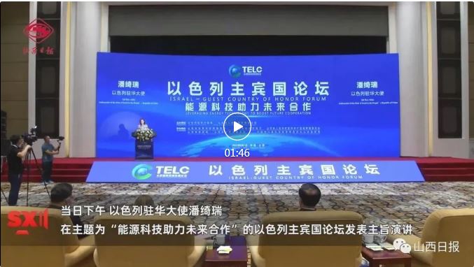 在高峰論壇發(fā)表主旨演講;與太原市市長(zhǎng)共同種植友誼樹30棵并樹立紀(jì)念碑,寓意中以30年合作取得豐碩成果;出席以色列分論壇與能源產(chǎn)業(yè)B2B對(duì)接會(huì)......作為以色列駐華大使,潘綺瑞和她所代表的以色列“主賓國”之旅很是繁忙。