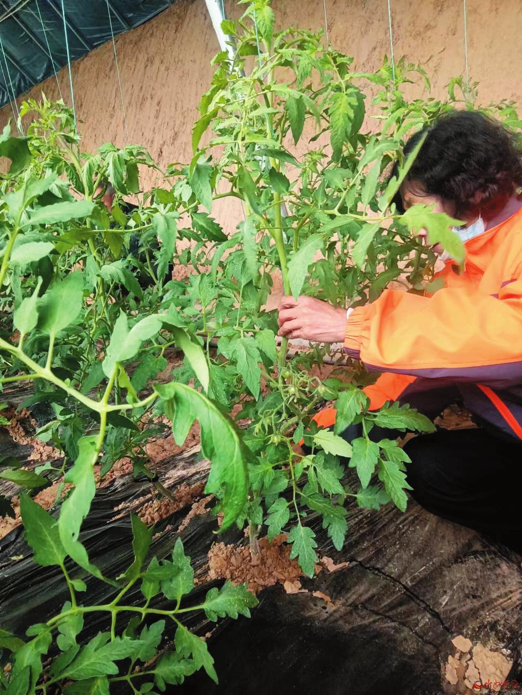 據(jù)了解,該大棚的管控依托于整個南作村周邊大田環(huán)境監(jiān)測設備對周邊環(huán)境的數(shù)據(jù)采集,利用風速傳感器、風向傳感器、雨量傳感器、太陽能土壤墑情數(shù)據(jù)采集,對土壤溫濕度電導率、土壤PH值傳感器中氮磷鉀信息進行實時采集。并配備了蟲情設備檢測儀器,通過太陽能蟲情測報燈、自動清蟲太陽能殺蟲燈、交流電殺蟲燈對大棚和大田的蟲情進行殺蟲處理。通過智能數(shù)據(jù)采集將大棚中的空氣溫濕度、光照強度、二氧化碳、大氣壓等信息實時導入管理系統(tǒng),根據(jù)其數(shù)值和農(nóng)業(yè)作物的數(shù)據(jù)需求,實現(xiàn)自動卷簾調(diào)節(jié)溫濕度。另外,根據(jù)農(nóng)作物的營養(yǎng)需求,應用水肥一體化設備把營養(yǎng)液和預防藥物進行了自動化的管控,確保農(nóng)作物生長在健康的環(huán)境中,產(chǎn)出市民放心的蔬菜。圖為技術人員在察看番茄結果狀況。 (本報記者 李 濤攝