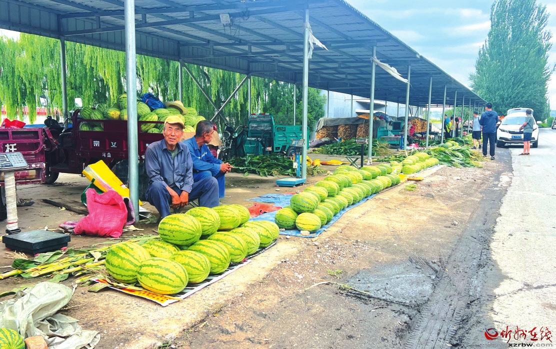 市場(chǎng)有回響,品質(zhì)過(guò)硬銷路旺。在村里的瓜果交易市場(chǎng),75歲的鄔培林?jǐn)偽磺埃慌排艂€(gè)頭飽滿的西瓜格外顯眼。有著多年種植經(jīng)驗(yàn)的他對(duì)市場(chǎng)行情了如指掌:“西瓜上市半個(gè)多月了,剛開(kāi)始賣(mài)兩元一斤,現(xiàn)在是6角一斤,正在陸續(xù)降價(jià)?!彪m然價(jià)格隨上市時(shí)間有所回落,但西瓜品質(zhì)好不愁銷路。