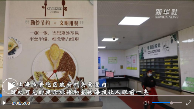 “點菜點少、不夠再添”“光盤行動、從我做起”“厲行節(jié)約、反對浪費”……在上海市普陀區(qū)政府機關食堂內,隨處可見的提示標語和宣傳海報讓人眼前一亮。