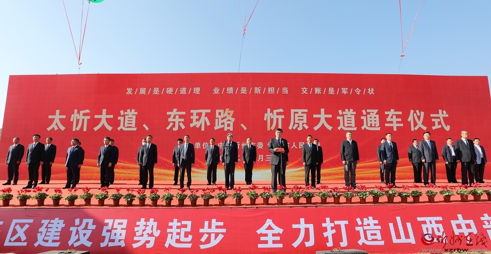 9月30日,我市舉行太忻大道、東環(huán)路、忻原大道通車儀式,市委書記朱曉東出席儀式并宣布太忻大道、東環(huán)路、忻原大道通車。市委副書記、市長李建國主持儀式。市委副書記、政法委書記郭奔勝,市人大常委會主任王珍,市政協(xié)主席范建民,山西建投集團公司副董事長、總經(jīng)理徐忠和,市領導劉卓良、趙新年、張文偉、溫建軍、張敏、張宇光、史紅波、賈玲香、崔崢嶺、李碩、王建峰、張文斌,市政府秘書長張艮生,中鐵十七局集團公司和中建三局集團公司相關負責人出席。副市長耿鵬鵬介紹項目建設情況。