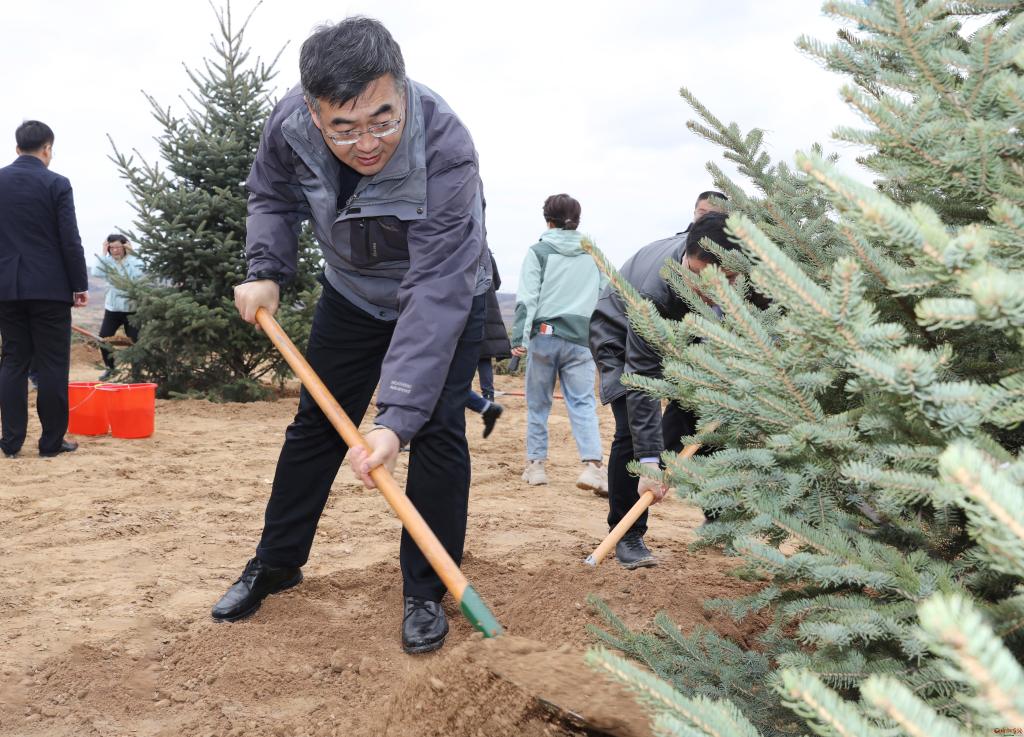 朱曉東指出,國土綠化,功在當(dāng)代、利在千秋。開展大規(guī)模國土綠化行動,是貫徹落實習(xí)近平生態(tài)文明思想的重要實踐,是忻州牢記領(lǐng)袖囑托、保護黃河安瀾、筑牢環(huán)京津冀生態(tài)屏障的重要抓手。全市上下要把抓好生態(tài)文明建設(shè)作為堅決捍衛(wèi)“兩個確立”的具體行動,增強“四個意識”、堅定“四個自信”、做到“兩個維護”,站在筑牢國家生態(tài)安全屏障的戰(zhàn)略高度,站在實現(xiàn)忻州高質(zhì)量永續(xù)發(fā)展的高度,深刻認識開展國土綠化行動和全民義務(wù)植樹的極端重要性,堅決落實好市委、市政府的部署安排。朱曉東說,忻州作為黃河入晉第一市,作為汾河、桑干河、滹沱河“三河之源”,作為華北平原西部生態(tài)屏障,扛牢生態(tài)建設(shè)使命,必須謀在先干得實。要牢固樹立生態(tài)文明觀,準(zhǔn)確把握生態(tài)與經(jīng)濟、生態(tài)與社會、全局與局部、當(dāng)前與長遠的關(guān)系,嚴(yán)格落實忻州“兩屏三區(qū)三帶”建設(shè)規(guī)劃,統(tǒng)籌山水林田湖草沙綜合治理,精準(zhǔn)謀劃、精細布局,堅持造管并重、造改并行、造封結(jié)合,確保在遵循規(guī)律的基礎(chǔ)上因地制宜,不斷擴大林地面積,不斷提高森林質(zhì)量,持續(xù)提升生態(tài)系統(tǒng)穩(wěn)定性,努力探索出務(wù)實管用的忻州綠化路徑。要圍繞國家重點區(qū)域重大生態(tài)修復(fù)和保護工程“雙重”項目、省級黃河流域生態(tài)防護林屏障、環(huán)京津冀生態(tài)安全屏障等造林綠化重點工程,積極爭取更多項目落地忻州。偏關(guān)、河曲、保德、五寨4縣要統(tǒng)籌造林綠化和荒漠化治理,科學(xué)精準(zhǔn)推進人造林、退化林修復(fù)、100個重點村莊高標(biāo)準(zhǔn)綠化美化等項目實施,著力打造集晉西北整流域綜合治理、片帶狀生態(tài)防護、節(jié)點景觀綠化為一體的荒漠化典型示范工程,為黃河流域生態(tài)保護修復(fù)提供可復(fù)制可借鑒的經(jīng)驗。要深化全民履“植”,繼續(xù)深化全民植樹成效,創(chuàng)新義務(wù)植樹形式,提高公民義務(wù)植樹參與率,讓愛綠植綠護綠成為群眾的自覺追求,讓綠水青山成為忻州的“幸福靠山”。要完善管護體系,把營造林數(shù)量、質(zhì)量“雙增”的目標(biāo)擺在首位,創(chuàng)新管護方式,全面落實林長制,做好森林防火工作,加大對亂砍濫伐、非法開墾等破壞造林綠化成果違法行為的處置力度,真正管在實處、管在關(guān)鍵。朱曉東強調(diào),做好國土綠化工作關(guān)鍵在落實。市發(fā)改、財政、自然資源(林業(yè))、住建、交通運輸、農(nóng)業(yè)、水利等主要職能部門,要各司其職、密切配合,協(xié)同推進城市、礦山、道路、村鎮(zhèn)、水域、山地等國土綠化工作。各縣(市、區(qū))一把手要親自抓、重點抓、具體抓,樹立正確的政績觀,主政一方、造福一方,為當(dāng)?shù)刈訉O后代建好水庫、錢庫、糧庫、碳庫。要開展身邊增綠、城鄉(xiāng)增景行動,既增大“綠”,也抓小“綠”、微“綠”,既造底色,也造景色、美色,真正把國土綠化同高質(zhì)量發(fā)展大局結(jié)合起來,為美麗忻州、品質(zhì)忻州、幸福忻州貢獻更多力量。