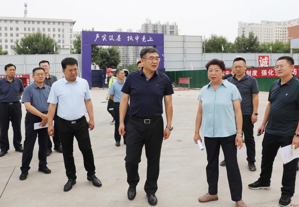調(diào)研市醫(yī)療衛(wèi)生重點項目建設情況。范濤攝 聚焦教育、醫(yī)療、就業(yè)等關鍵領域,全力辦好民生實事,及時解決具體民生問題,是今年政府工作報告的重要內(nèi)容。李建國先后到市疾控中心新建項目、市第三人民醫(yī)院建設項目、市兒童醫(yī)院婦兒保健業(yè)務用房建設項目、市第二人民醫(yī)院門診樓項目等施工現(xiàn)場,實地調(diào)研項目建設情況和存在問題,并針對存在問題現(xiàn)場進行協(xié)調(diào)解決。目前,市疾控中心新建項目的三座建筑中,一座的主體建筑地面部分即將完成,另外兩座正在進行基礎施工;市第三人民醫(yī)院主體建筑已經(jīng)開始部分外立面施工;市兒童醫(yī)院婦兒保健業(yè)務用房建設項目地面主體框架已經(jīng)完成;市第二人民醫(yī)院門診樓項目準備開建。