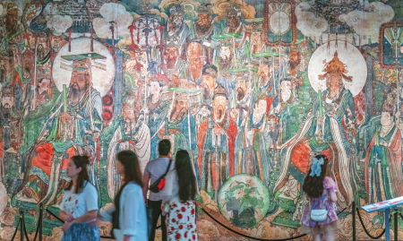 而3D打印、將色彩細(xì)節(jié)高度還原后的永樂(lè)宮壁畫(huà)精華——三清殿《朝元圖》,則隨著“觀(guān)妙入真——永樂(lè)宮壁畫(huà)保護(hù)與傳承特展”巡回全國(guó),賺足了眼球,成為永樂(lè)宮熱度日增的“引流密碼”。