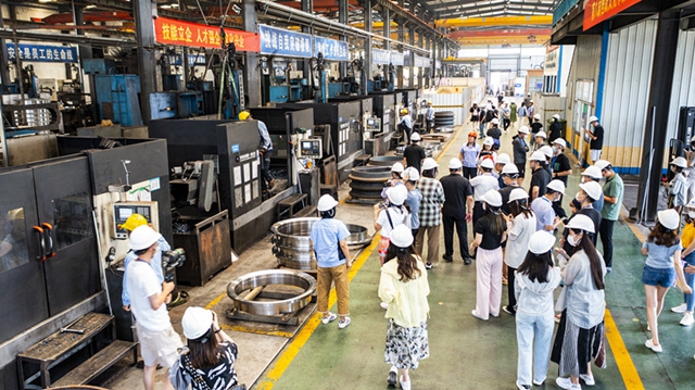 7月20日,“爭(zhēng)先崛起看中部”——第十七屆全國(guó)網(wǎng)絡(luò)媒體山西行記者團(tuán)一行來到了“中國(guó)鍛造之鄉(xiāng)”——定襄縣的山西恒躍鍛造有限公司。記者江建橋攝