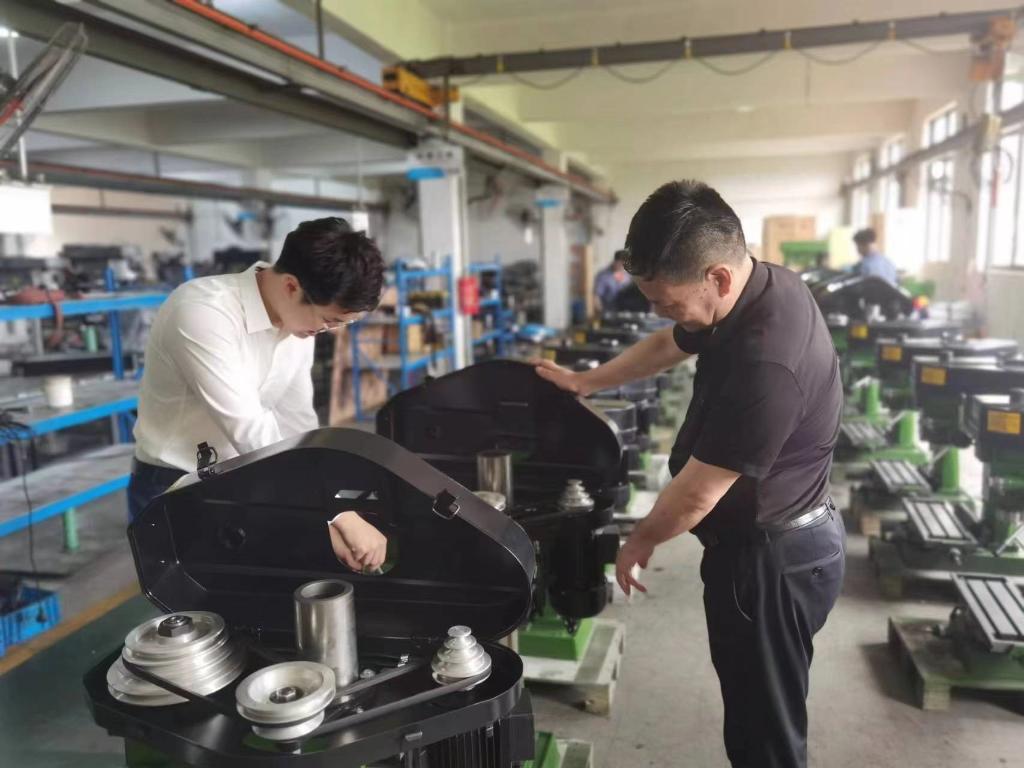 受疫情影響,2021年外貿(mào)企業(yè)訂單量隨著海運(yùn)放緩、海外需求下降而減少。生產(chǎn)閑下來了,但繆繼云和兒子繆帥濤對產(chǎn)品改良的思考沒有停止。在不斷調(diào)試臺鉆時(shí),他們發(fā)現(xiàn),調(diào)速必須動手換皮帶,“為什么不能像調(diào)收音機(jī)一樣調(diào)動速率呢?”兩人一商量,立即開始畫草圖,接著去銀行貸款投入模具開發(fā)。