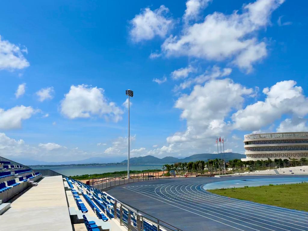 6月27日在海南陵水拍攝的國(guó)際教育創(chuàng)新試驗(yàn)區(qū)園區(qū)內(nèi)的運(yùn)動(dòng)場(chǎng)。新華社記者 劉勇貞 攝