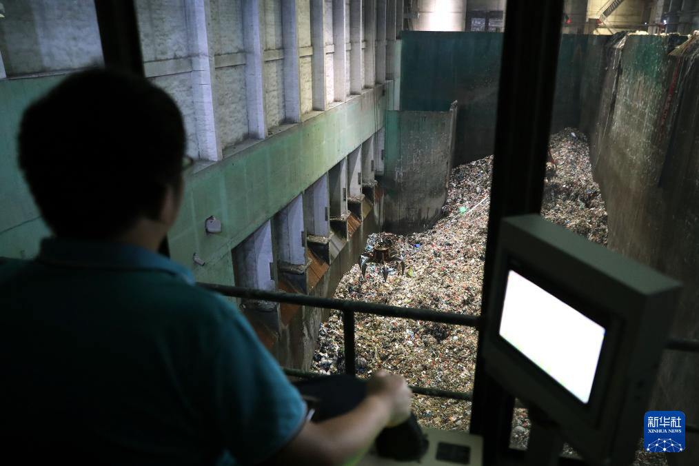 此時,類似抓娃娃機爪子的巨大垃圾吊,正將約8噸重的生活垃圾抓起并投入爐膛溫度高達上千攝氏度的焚燒爐。