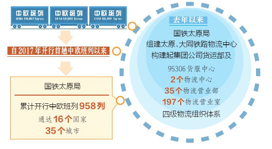 “自2017年開(kāi)行首趟中歐班列以來(lái),國(guó)鐵太原局累計(jì)開(kāi)行的中歐班列已有958列,通達(dá)16個(gè)國(guó)家、35個(gè)城市?!眹?guó)鐵太原局貨運(yùn)部科長(zhǎng)田源介紹,“中歐班列已經(jīng)成為不沿海、不沿邊的山西省對(duì)外開(kāi)放重要平臺(tái)?!?/p>