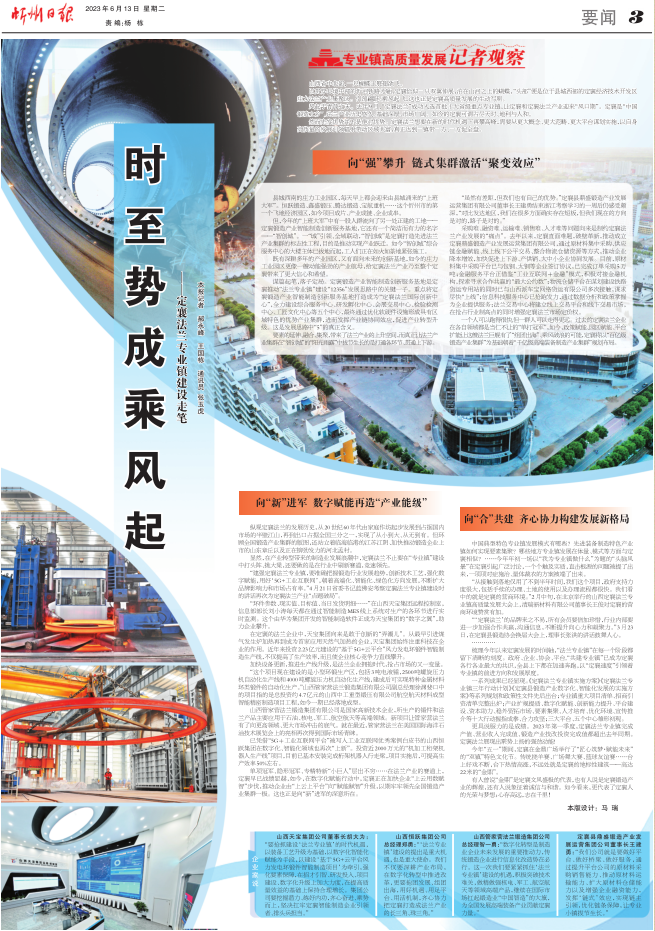 一系列成果已經顯現。《定襄法蘭專業(yè)鎮(zhèn)實施方案》《定襄法蘭專業(yè)鎮(zhèn)三年行動計劃》《定襄縣鍛造產業(yè)數字化、智能化發(fā)展的實施方案》等系列規(guī)劃和政策性文件先后出臺;專業(yè)鎮(zhèn)重大項目清單、招商引資清單完整出爐;產業(yè)擴規(guī)提質、數字化賦能、創(chuàng)新能力提升、平臺建設、資本助力、穩(wěn)外貿拓市場、要素集聚、人才培育、優(yōu)化環(huán)境、宣傳推介等十大行動握指成拳、合力攻堅;三大平臺、五個中心雛形初現。