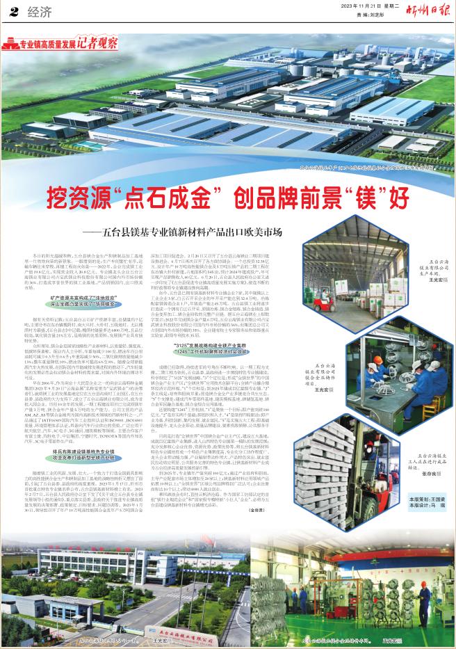 乘風破浪會有時,直掛云帆濟滄海。作為國家工信部認定的首批“鎂行業(yè)規(guī)范企業(yè)”和“國家級專精特新‘小巨人’企業(yè)”,必將為五臺縣建設鎂基新材料專業(yè)鎮(zhèn)增光添彩。 (金俊賢)