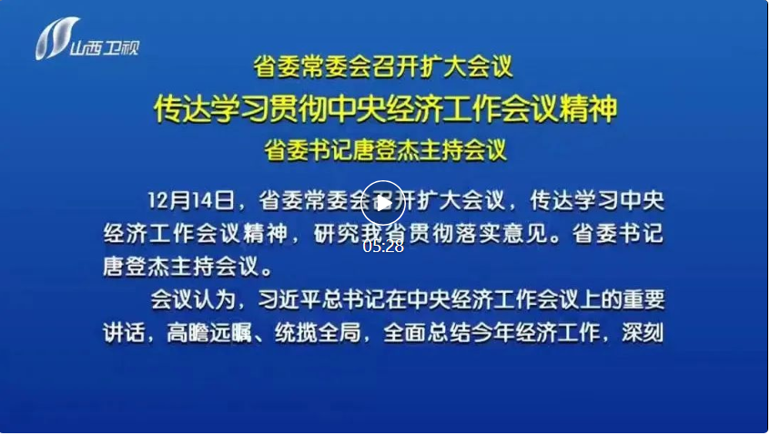 山西日?qǐng)?bào)報(bào)道 12月14日,省委常委會(huì)召開擴(kuò)大會(huì)議,傳達(dá)學(xué)習(xí)中央經(jīng)濟(jì)工作會(huì)議精神,研究我省貫徹落實(shí)意見。省委書記唐登杰主持會(huì)議。