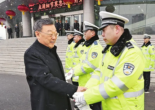 唐登杰先后來到國網(wǎng)山西省電力公司、太原市公安局交通警察支隊和太原市天然氣公司新建路管理站,深入了解電力保供、交通保暢、燃?xì)獍踩裙ぷ鬟\行情況,向值班值守人員送上新春祝福。他指出,群眾利益無小事。進(jìn)入春節(jié)假期,做好各項公共服務(wù)工作十分重要。希望大家繼續(xù)發(fā)揚優(yōu)良傳統(tǒng),增強主動服務(wù)意識,用自己的“辛苦指數(shù)”換來群眾的“幸福指數(shù)”。要優(yōu)化值班值守和輪崗輪休安排,做好后勤服務(wù)保障,讓堅守崗位的同志感受到組織的關(guān)愛和濃濃的年味。
