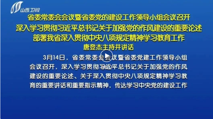 山西日報報道 3月14日,省委常委會會議暨省委黨建工作領(lǐng)導(dǎo)小組會議召開,深入學(xué)習(xí)貫徹習(xí)近平總書記關(guān)于加強黨的作風(fēng)建設(shè)的重要論述、關(guān)于深入貫徹中央八項規(guī)定精神學(xué)習(xí)教育的重要講話和重要指示精神,傳達學(xué)習(xí)中央黨的建設(shè)工作領(lǐng)導(dǎo)小組會議精神,按照《關(guān)于在全黨開展深入貫徹中央八項規(guī)定精神學(xué)習(xí)教育的通知》要求,對全省開展學(xué)習(xí)教育進行安排部署,審議通過《關(guān)于在全省開展深入貫徹中央八項規(guī)定精神學(xué)習(xí)教育的實施方案》。省委書記、省委黨的建設(shè)工作領(lǐng)導(dǎo)小組組長唐登杰主持會議并講話。