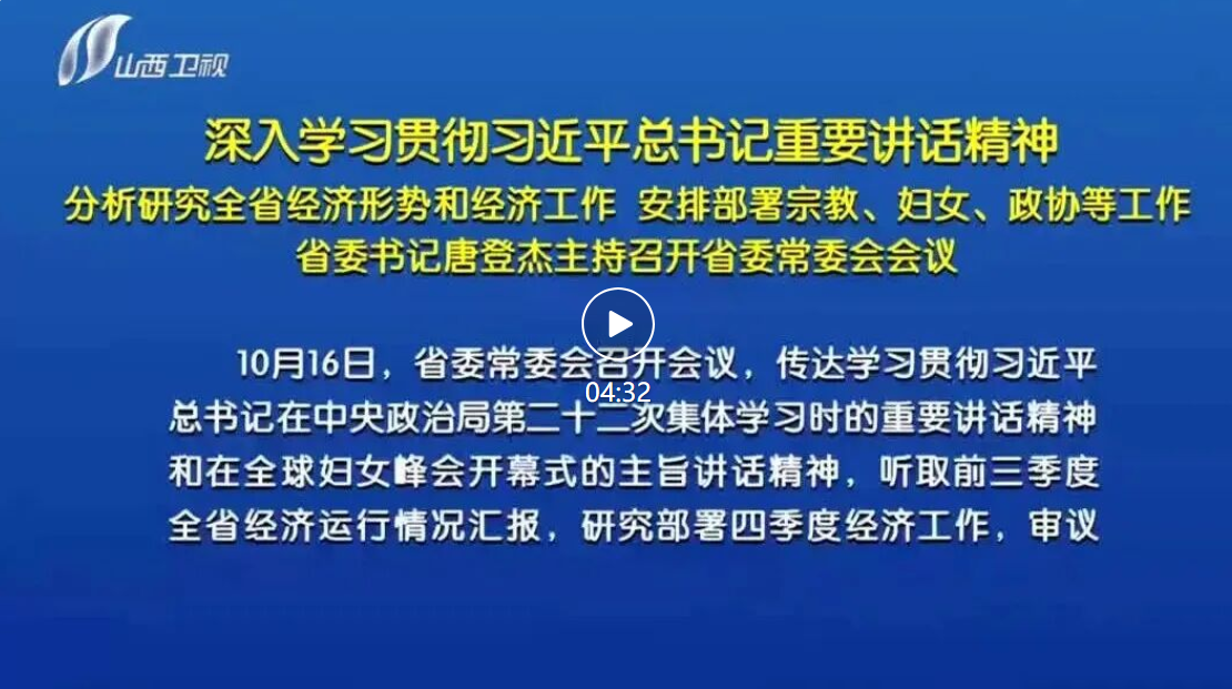 10月16日,省委常委會召開會議,傳達學(xué)習(xí)貫徹習(xí)近平總書記在中央政治局第二十二次集體學(xué)習(xí)時的重要講話精神和在全球婦女峰會開幕式的主旨講話精神,聽取前三季度全省經(jīng)濟運行情況匯報,研究部署四季度經(jīng)濟工作,審議通過《關(guān)于完善制度機制充分發(fā)揮人民政協(xié)專門協(xié)商機構(gòu)作用的意見》。省委書記唐登杰主持會議。