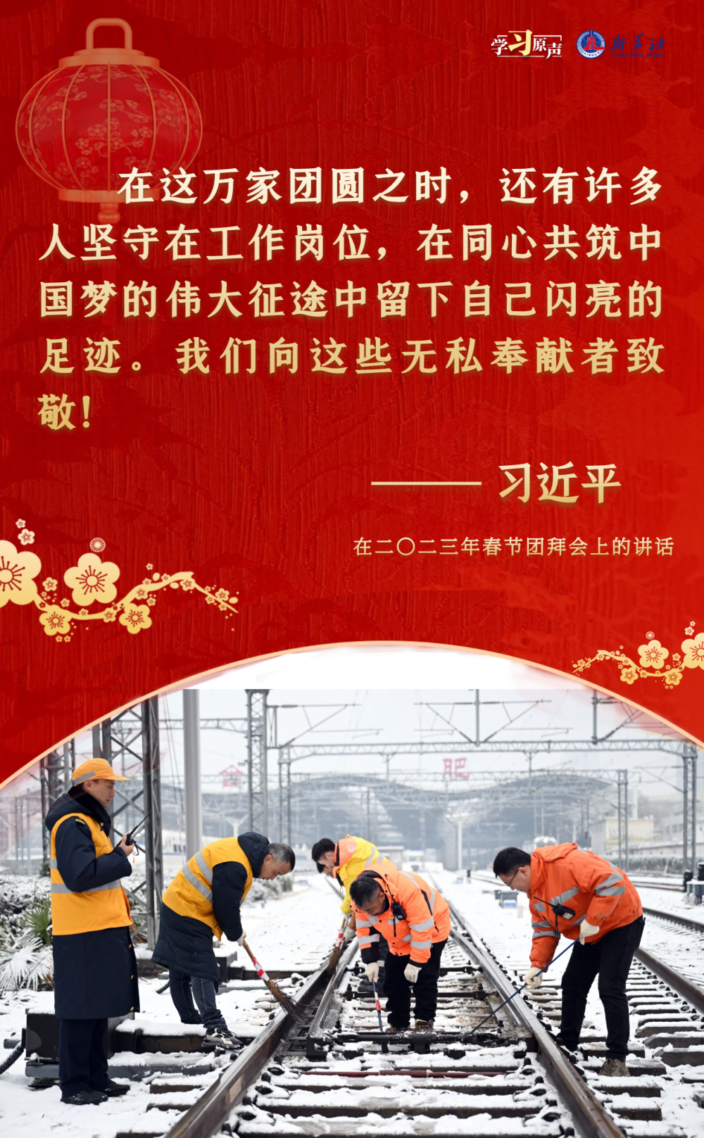 農(nóng)歷新年前夕,習(xí)近平總書記在春節(jié)團(tuán)拜會(huì)上發(fā)表熱情洋溢的講話,辭舊歲、賀新春,送祝福、道真情。總書記溫暖而有力的話語鼓舞人心,催人奮進(jìn),凝聚奮進(jìn)新征程的磅礴力量。