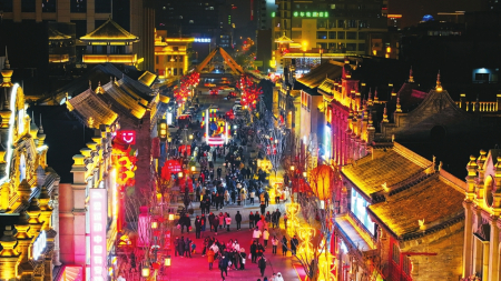 2月11日晚,太原市鐘樓街燈火通明、人頭攢動,一派喜氣洋洋的節(jié)日氣氛。春節(jié)到來,省城街頭流光溢彩、彩燈高懸、夜景如畫,散發(fā)著濃濃年味。人們攜親伴友紛紛走上街頭,感受濃郁的節(jié)日氛圍。