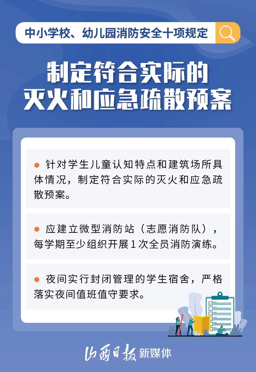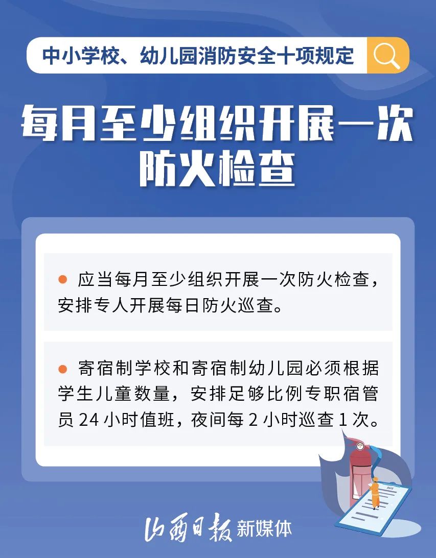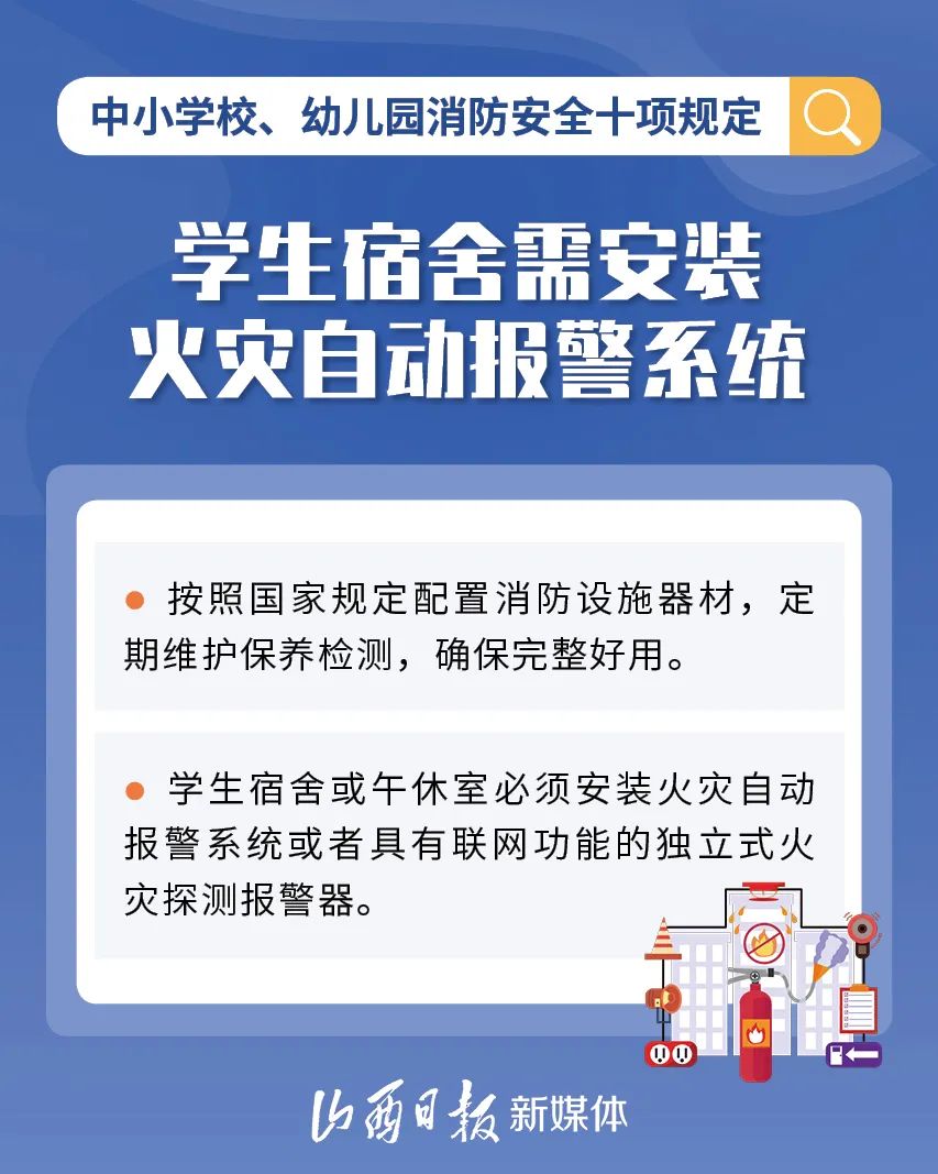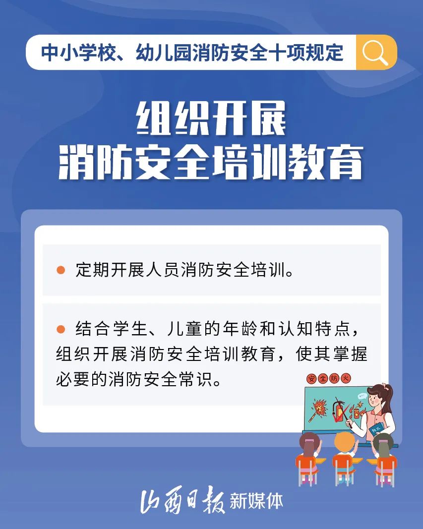 為加強中小學校、幼兒園消防安全管理,近日,教育部、國家消防救援局研究制定了《中小學校、幼兒園消防安全十項規(guī)定》,具體規(guī)定內(nèi)容如下。