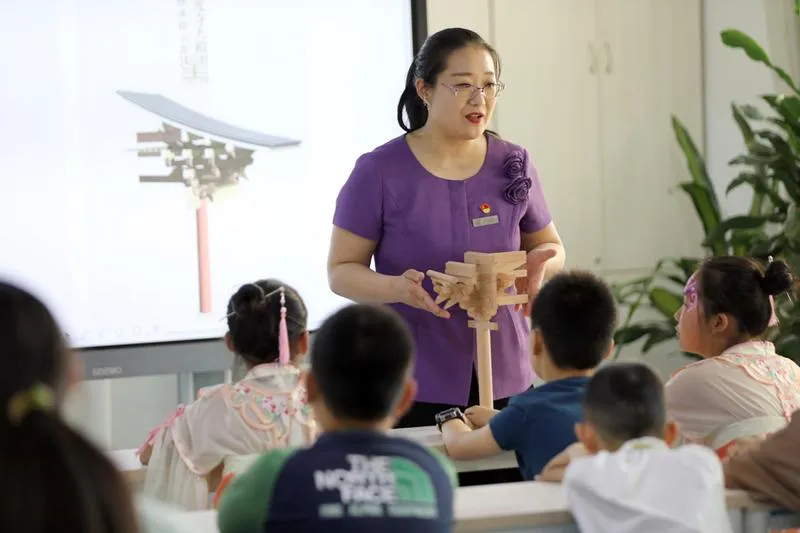 在古建小課堂斗拱搭建中,省博物院老師選取中國古代建筑最關(guān)鍵也是最有特色的斗拱為原型,指導同學們制作了五臺山佛光寺唐代斗拱模型。不僅可以了解山西古代輝煌燦爛的建筑文化,還可以親自動手,體驗唐代斗拱的搭建,感受古代木作匠師的智慧,增進對中國古代建筑文化的了解。