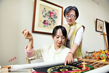 5.高寧經(jīng)常手把手教學,希望能培養(yǎng)出山西民間刺繡設(shè)計和制作從業(yè)人員,和她一起傳承山西刺繡。