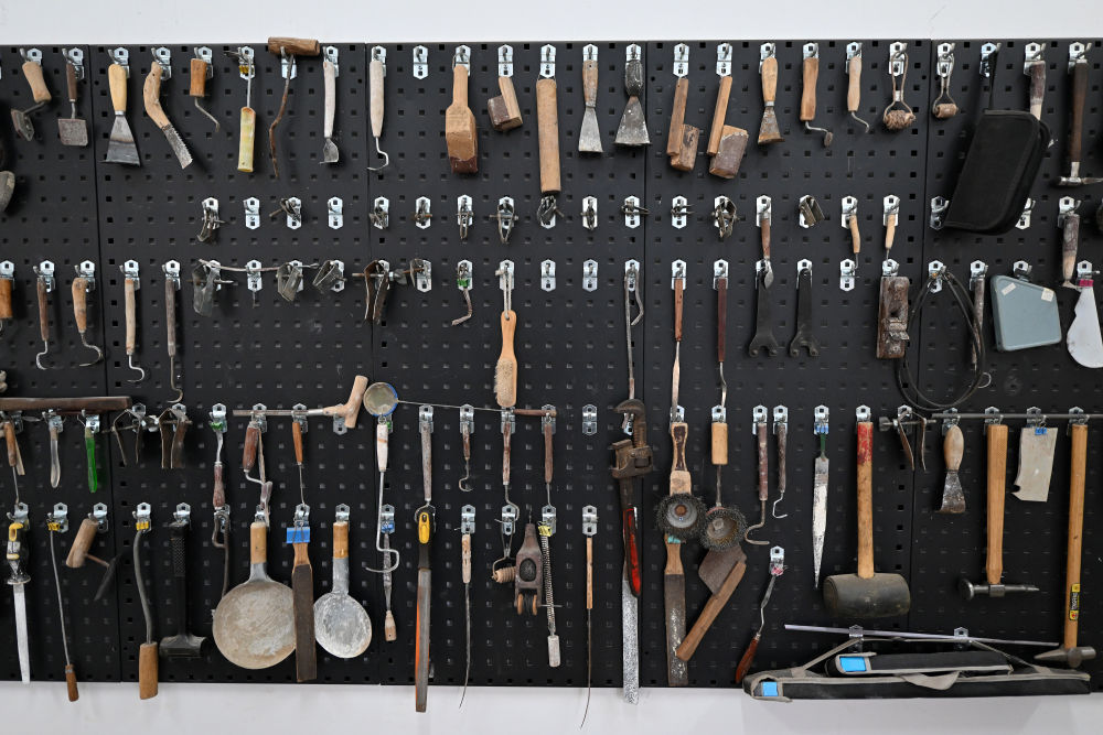 云岡研究院可移動(dòng)文物修復(fù)室墻上用于修復(fù)文物的工具(2024年2月26日攝)。