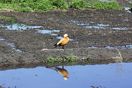 隨著生態(tài)環(huán)境向好、水位上升和近期氣溫回暖,多年未出現(xiàn)的中華赤麻鴨也現(xiàn)身赤橋村,時(shí)而在水塘邊覓食,時(shí)而在稻田里嬉戲。遠(yuǎn)處鳥群凌空盤旋,鳥鳴聲不絕于耳,旋耕機(jī)在稻田來回穿梭,映著青綠山色,構(gòu)成一幅生機(jī)盎然的和美鄉(xiāng)村畫卷。