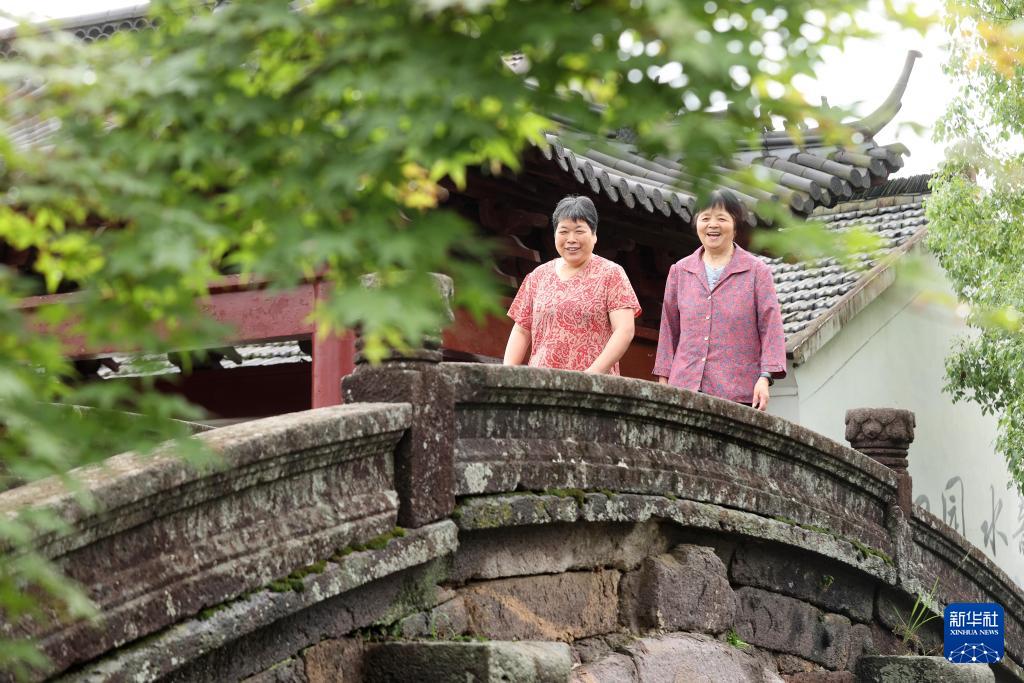 6月26日,村民在德清縣新安鎮(zhèn)舍北村萬善橋上散步。(新華社發(fā) 謝尚國(guó) 攝)