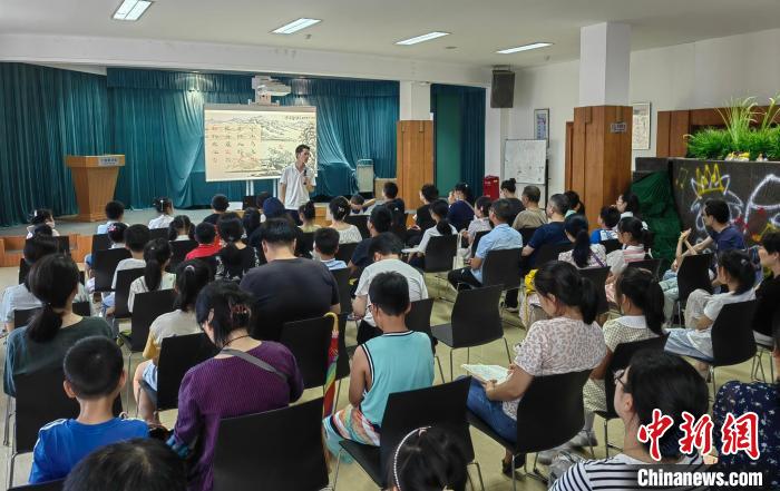 寧波圖書館“共讀Moment·閱經(jīng)典”活動現(xiàn)場幾乎座無虛席,當(dāng)?shù)刂Z文教師北辰為孩子們講解柳宗元的《江雪》。 中新網(wǎng)記者 應(yīng)妮 攝