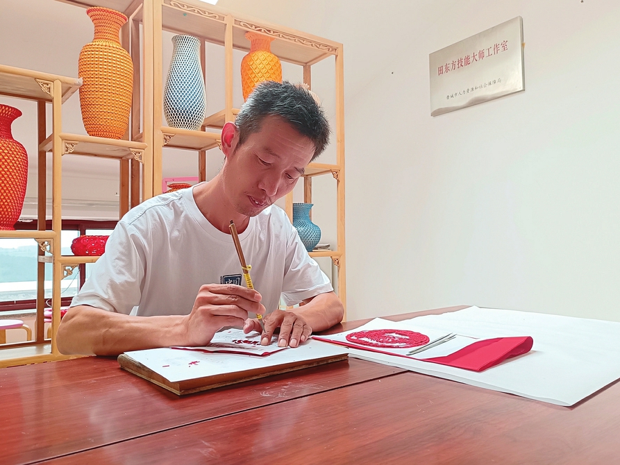 田東方正在創(chuàng)作“陵川剪紙”。吳艷斐攝