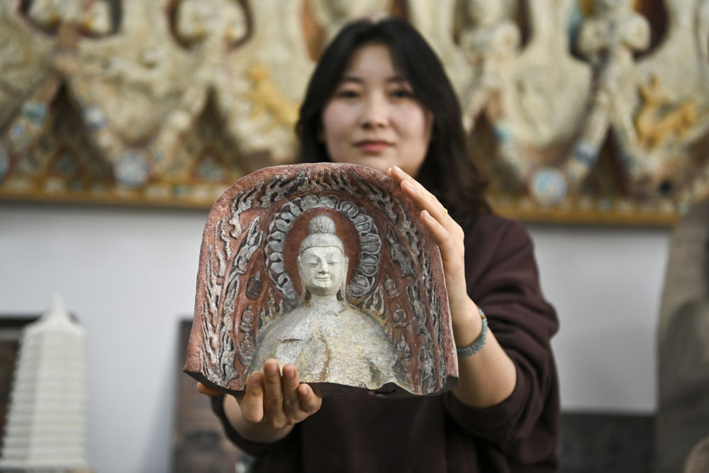 這是4月16日在云岡研究院數(shù)字化保護(hù)中心展廳拍攝的3D打印佛像模型。云岡研究院還通過高校合作、對(duì)外交流等方式