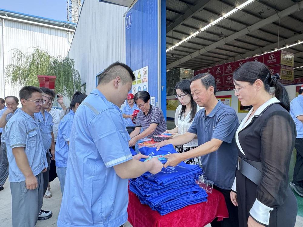 為職工發(fā)放宣傳紀念品
