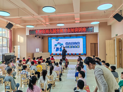活動(dòng)中,交警向園內(nèi)幼兒及教職工播放了幼兒交通安全宣傳視頻,通過對視頻內(nèi)容的講解,引導(dǎo)孩子們進(jìn)一步理解交通安全法規(guī)與出行安全。