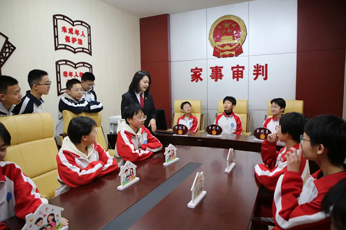 在法院講解員的帶領(lǐng)下,學(xué)生們依次參觀了訴訟服務(wù)中心、家事文化長(zhǎng)廊、陽光大廳、科技法庭、院史陳列室等場(chǎng)所,認(rèn)真觀看了中院全面建設(shè)專題片和中院干警自編自導(dǎo)自演的預(yù)防未成年人犯罪題材法治微電影《你依然是天使》,對(duì)法院的職能作用、機(jī)構(gòu)設(shè)置、歷史文化、信息化建設(shè)有了更為深刻的認(rèn)識(shí)。
