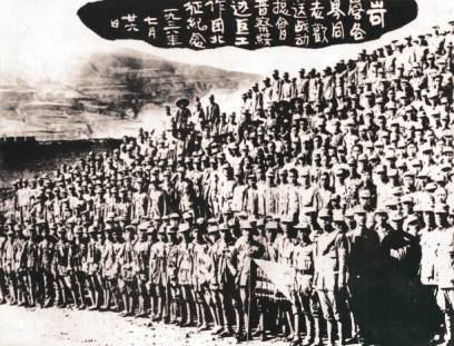 圖5 從1937年9月成立到1938年,戰(zhàn)動總會先后在第二戰(zhàn)區(qū)內(nèi)組建了17個游擊支隊,另有山西工人武裝自衛(wèi)旅(簡稱工衛(wèi)旅)、察綏游擊軍、1個政治保衛(wèi)隊、2個地方游擊隊,還有戰(zhàn)區(qū)各縣游擊隊、自衛(wèi)隊等。圖為1942年10月工衛(wèi)旅在興縣舉行成立5周年紀念大會后,司令部與政治部全體干部合影。